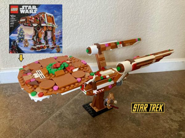 Brad Barber is a master LEGO artist who creatively takes LEGO kits and makes them into completely different designs. For example, a gingerbread Star Wars AT-AT becomes the USS Enterprise from Star Trek.